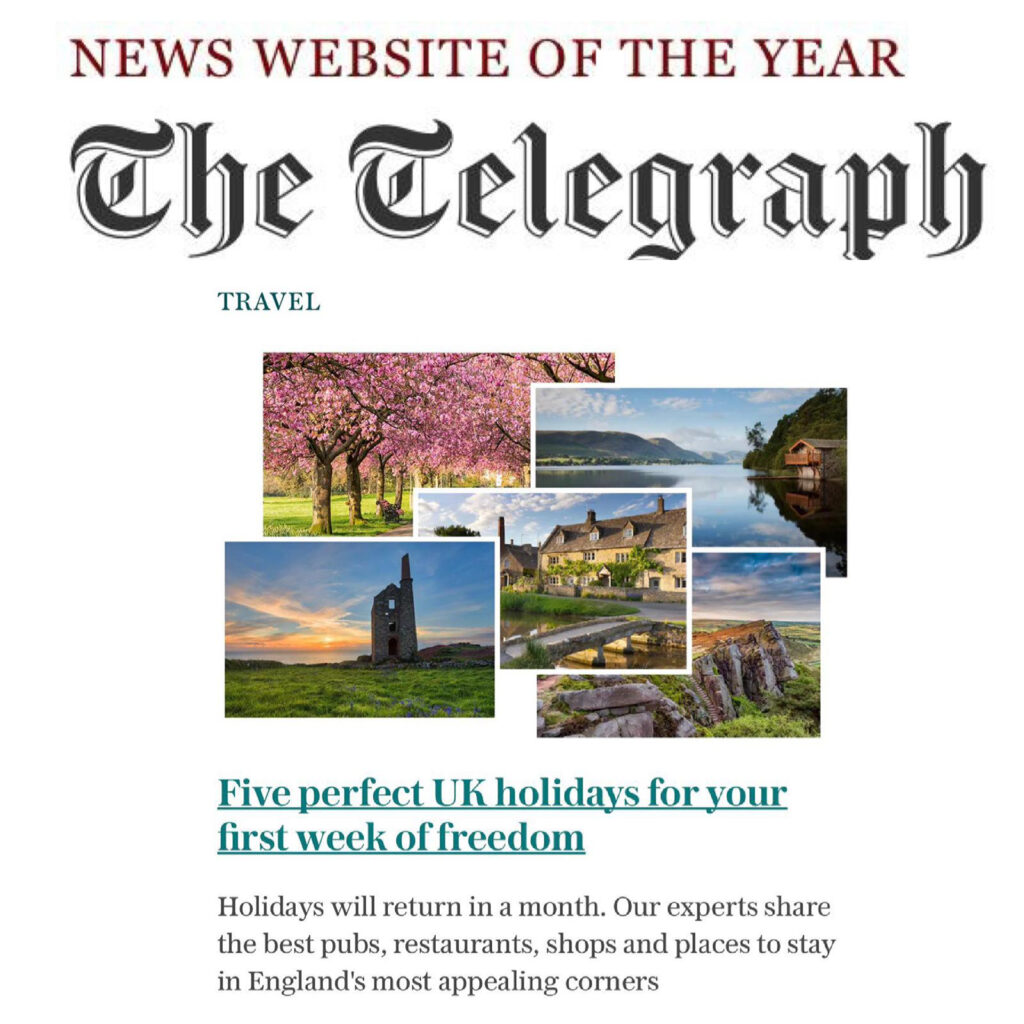 We are delighted to have made The Telegraph’s ‘Five Perfect UK Holidays for the first week of freedom’ as chosen by their experts.