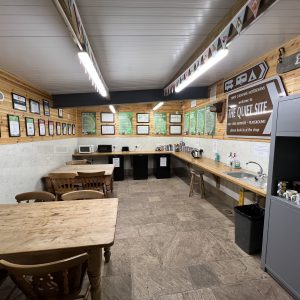 With it’s tables and chairs, it’s a warm, dry space to cook and eat in, or just chat to your fellow campers.