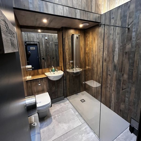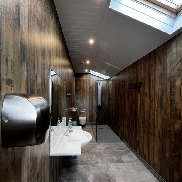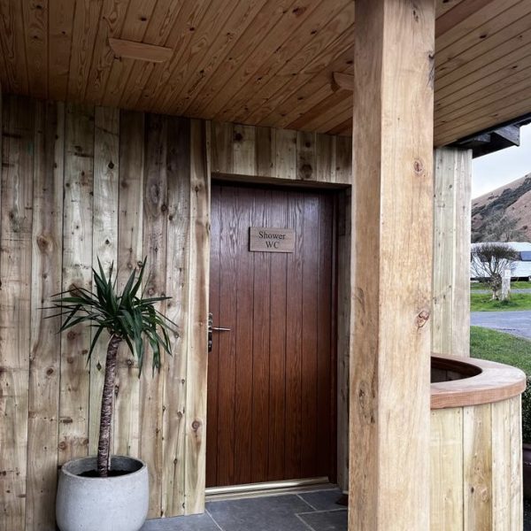Our showers and wash facilities at The Quiet Site are powered entirely by solar, biomass and ground source heat energy. No fossil fuels are used at all.