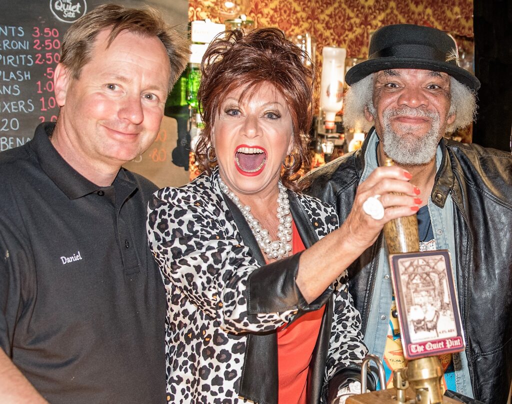 Singer and Actress Elaine Paige and actor Paul Barber called in for a Quiet Pint this afternoon. They are both filming in the Ullswater valley. Elaine was delighted to pull her first ever pint.!