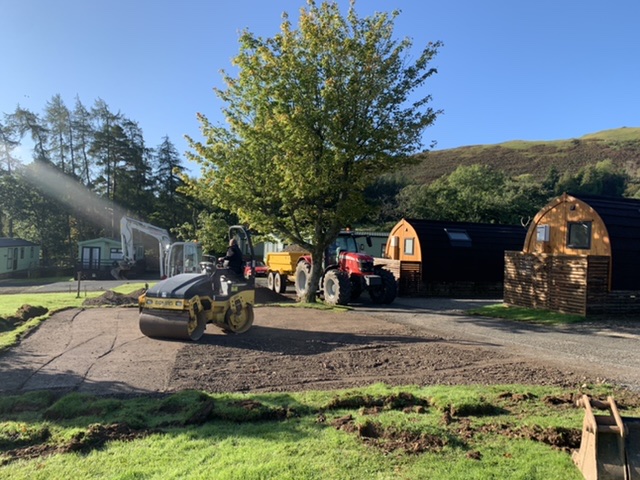 The pitches in our smaller field are all being rebuilt to bring them up to standard. Each 10m x 10m gravel pitch will be completely flat and have shared access to a central grassy area.