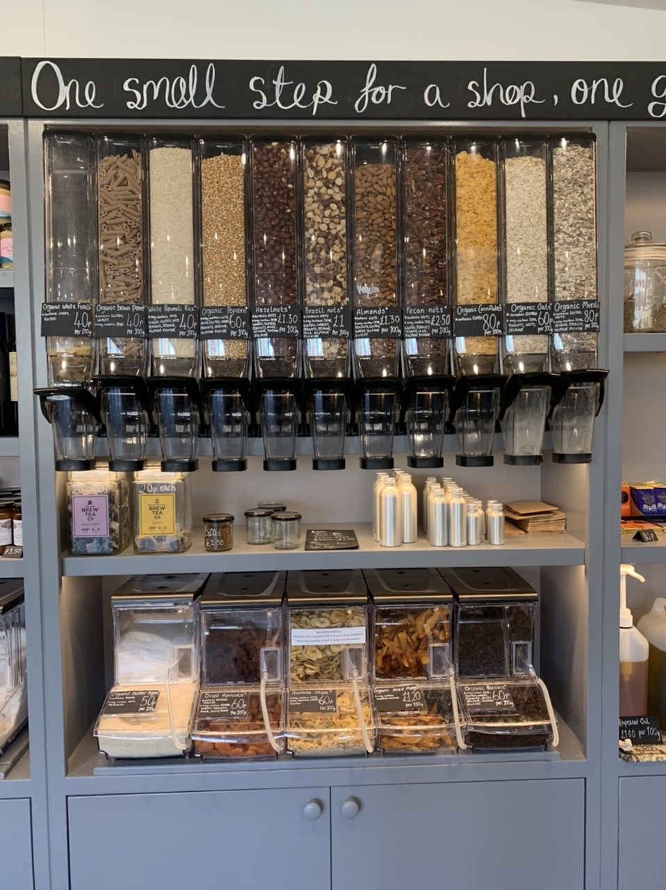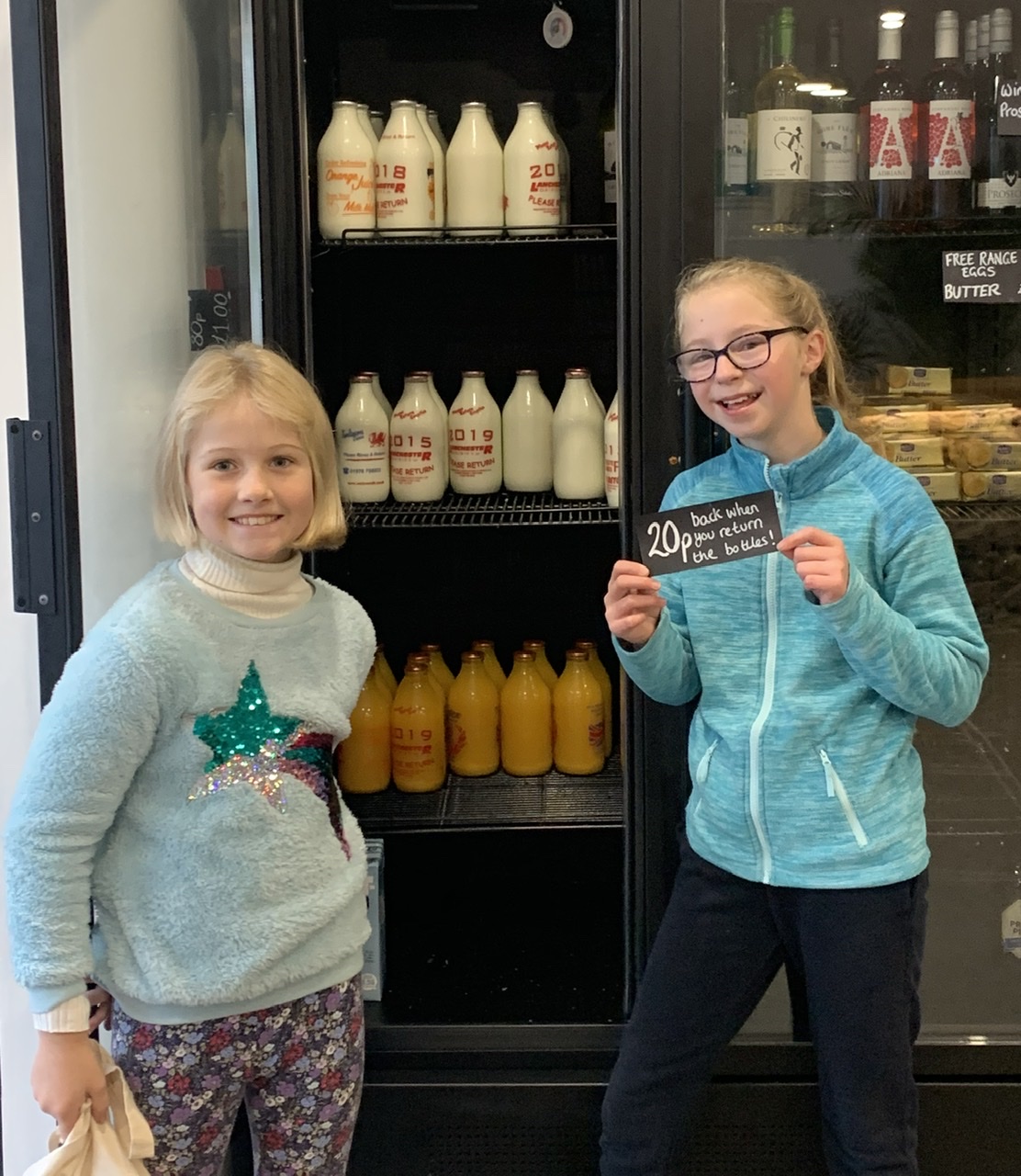 We sell lots of essential as well as amazing things – but with no plastic packaging. Milk and Orange juice comes in reusable glass. Bring the bottle back to the shop and get 20p back!