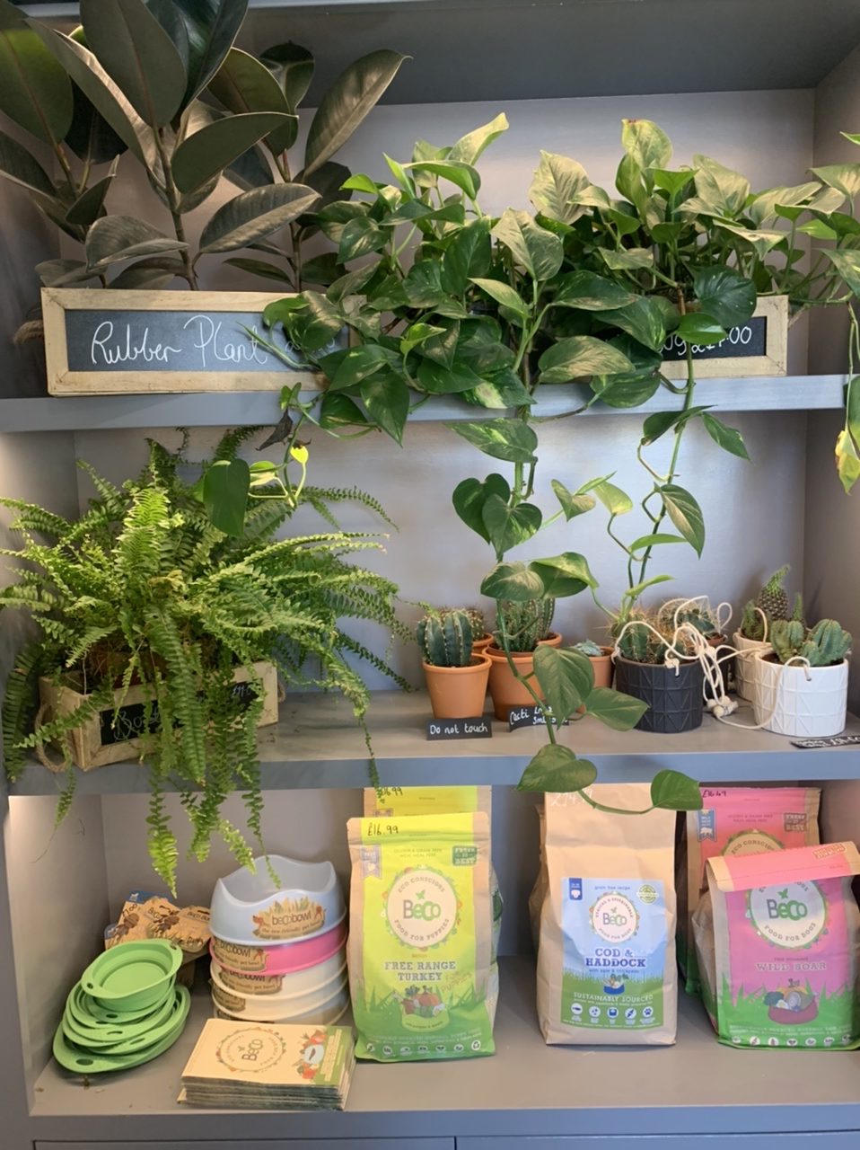 We have a growing range of soaps, shampoo bars, bamboo toothbrushes etc. Lots of lovey house plants are also for sale.